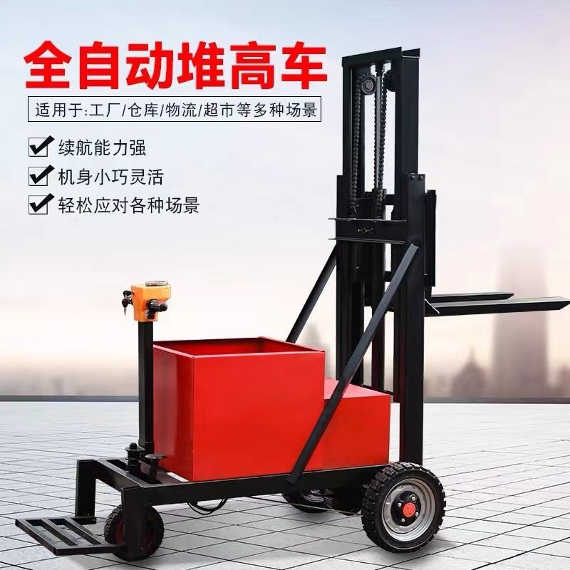 蓝山县前移式电动叉车全自动堆高车无腿托盘堆垛车电瓶升高装卸搬运机